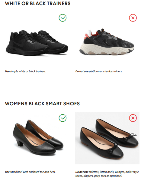 - Ensure there are no tears, runs or snags in your shoes.